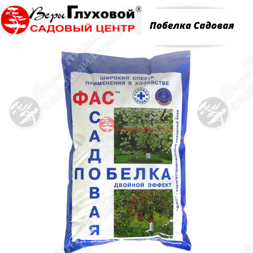 Садовая побелка служит для защиты деревьев и крупных кустарников от солнечных ожогов, резких перепадов температуры ранней весной. Состоит на 98% из карбоната кальция (мела). Порошкообразной формы. Оказавшиеся под слоем побелки споры болезнетворных грибов и бактерий не способны прорасти и вызвать заболевание культурных растений. Тем, у кого участок обнесен сплошным дощатым забором, можно порекомендовать побелить его с внутренней стороны. Споры болезнетворных грибов, попавшие на побеленные доски, быстро теряют жизнеспособность, благодаря чему забор из рассадника заразы превращается в дополнительную защиту от болезней. Разводится в воде и наносится путём распыления. Класс опасности 4 (малоопасное соединение). Безопасен для людей, животных, растений.