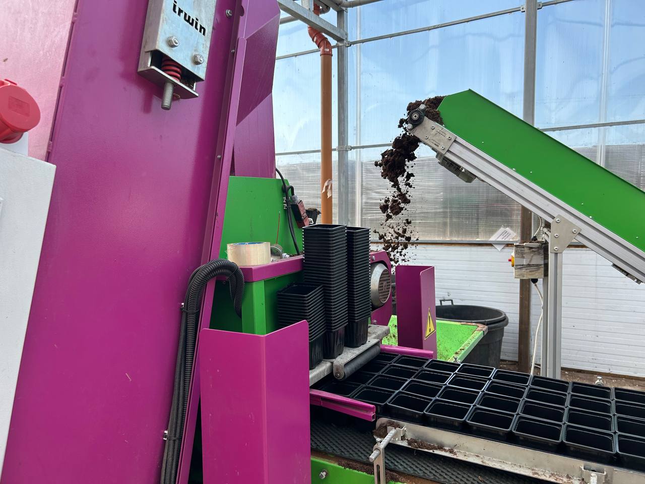 2⃣ Затем они наполняются торфом. Для этого используется универсальная торфонаполнительная машина.